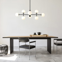 Doris è un lampadario dal design moderno, caratterizzato da una struttura in metallo che puoi scegliere in oro o nero. Con 20 sfere di vetro bianco, offre un'illuminazione elegante e accogliente. Questo lampadario è perfetto per illuminare un ampio salotto o un tavolo rettangolare, creando un’atmosfera raffinata e contemporanea.