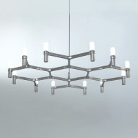 Lampada chandelier a sospensione dalla forma modulare che si ispira al cristallo di neve. Presenta una luce diffusa e diverse grandezze: Minor, Major, Multi, Summa, Magnum e Royal. La struttura è in alluminio pressofuso e i bicchierini diffusori in vetro sabbiato o su richiesta in vetro trasparente rigato. La sospensione è disponibile in alluminio spazzolato a mano lucido, placcate in oro o nero o verniciato opaco nei colori bianco, nero e oro. Summa e Magnum hanno una doppia accensione. Disponibile un kit Nemo con lampadine LED G9.