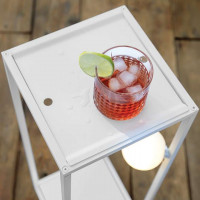 Abachina è la lampada da terra perfetta per chi vuole creare un'atmosfera accogliente e sofisticata in casa propria o nel proprio giardino. La sua forma a lanterna, con una struttura metallica a parallelepipedo in alluminio con finitura bianco o nero opaco, è abbellita da sfere in vetro soffiato di varie dimensioni. Il risultato è una lampada dal design elegante e moderno. Abachina è dotata di un piccolo vassoio sulla sommità, che permette di utilizzarla come piano d'appoggio per vasi, oggetti decorativi o perfino dispositivi elettronici, grazie al foro per il passaggio di cavi. Inoltre, la versione a batteria ricaricabile la rende perfetta per terrazzi e spazi all'aperto, evitando di dover collegare la lampada alla corrente elettrica.