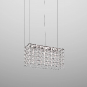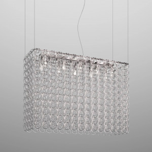 • Lampadario moderno cristallo: Ottimo per ambienti minimalisti, dove si vuole mantenere un’atmosfera sofisticata ma essenziale.