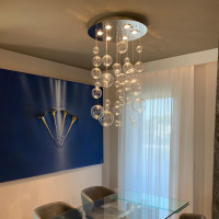 Plafoniera Bolero, caratterizzata da un rosone rotondo con 1 punto luce e 3 sfere in vetro decorative, rappresenta un raffinato connubio di eleganza e funzionalità. Disponibile nelle finiture trasparente, bianco, nero, rosso e ambra oro, questa lampada da soffitto illumina gli ambienti con un'esplosione di luce che si riflette e rimbalza sulle superfici cristalline delle sfere luccicanti. Ogni dettaglio della lampada da soffitto Bolero è studiato per offrire una soluzione estetica di alto livello. Le sfere di vetro, sospese da una solida base in inox lavorata con taglio laser, scendono leggere ed eleganti, dando vita a infinite possibilità compositive. La trasparenza estrema del vetro, unita alla brillantezza delle finiture, conferisce all'intera struttura un carattere distintivo e sofisticato. Questa lampada non solo arricchisce lo spazio con una luce, ma si impone anche come elemento di design capace di animare qualsiasi ambiente con la sua presenza scenografica.