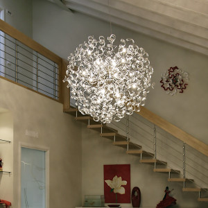 Astro è una proposta completa di lampade moderne per l’illuminazione interna, adatte sia ad ambienti domestici sia contract. Le lampade Astro si lasciano apprezzare principalmente per la loro esclusiva lavorazione artistica. L’elemento caratterizzante di queste lampade è il diffusore composto da riccioli di vetro e si ispira all’esplosione dei fuochi d’artificio. È possibile scegliere fra svariati modelli che si distinguono tra loro oltre che per le diverse finiture di colore anche per la dimensione. Per i lampadari le decorazioni in vetro che caratterizzano il diffusore vanno da un massimo di 660 elementi a un minimo di 3 elementi. Anche dal punto di vista delle forme vi è una ampia possibilità di scelta. Il diffusore può essere di forma tondeggiante e voluminosa, circolare, con elementi pendenti o a pioggia, disposto su due livelli, multiplo o lineare. Oltre alle numerose varianti di lampadari, la collezione di lampade Astro comprende anche le versioni applique, plafoniera, piantana e lampada da tavolo.