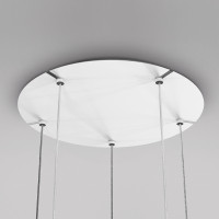 Rosone in metallo bianco verniciato, accessorio da abbinare ai lampadari Fullmoon e Selene per creare composizioni da tre, cinque o nove sfere.