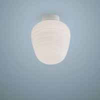 Rituals è una plafoniera di design che si contraddistingue per la particolare lavorazione del diffusore realizzato in vetro soffiato satinato e inciso da linee irregolari per restituire un effetto gessoso. L’attacco a soffitto è in metallo verniciato a polveri epossidiche. Rituals ricorda nella forma le lanterne di riso orientali, si traduce in una presenza piacevole che produce una luminosità diffusa e intima. Disponibile in tre forme e misure diverse, si adatta a numerosi contesti domestici arredati in stile moderno o contemporaneo.