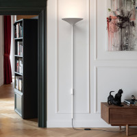 Lampada da terra dal design moderno ed originale firmato Paolo dell'Elce, con un'altezza di 185 cm. La testa della lampada è realizzata in alluminio pressofuso, è dotata di sorgenti LED ed emette luce indiretta verso l'alto.